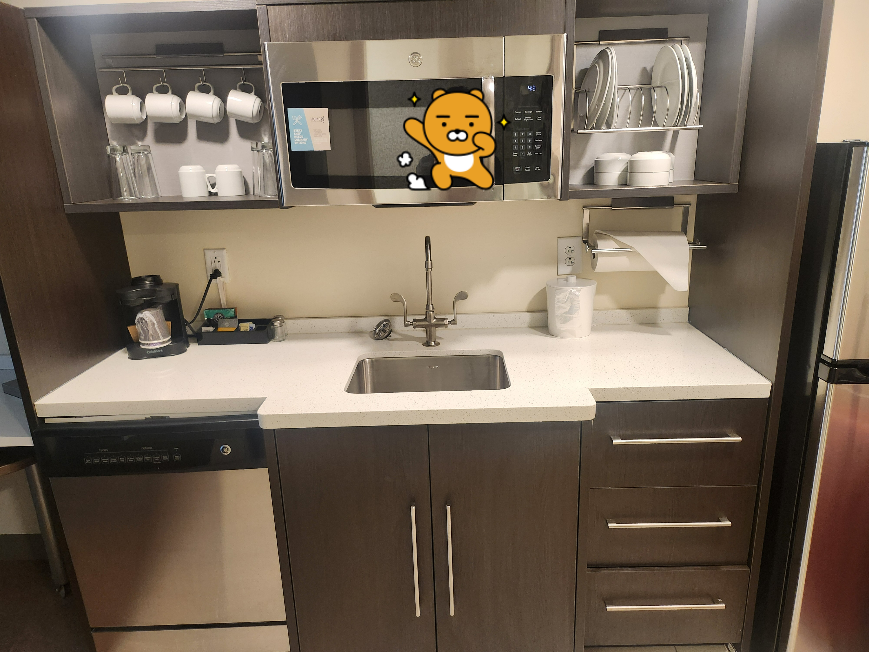 장기숙박을 해야 하기에, 냉장고, 쿡탑 및 주방집기가 있는 방을 선택했습니다.