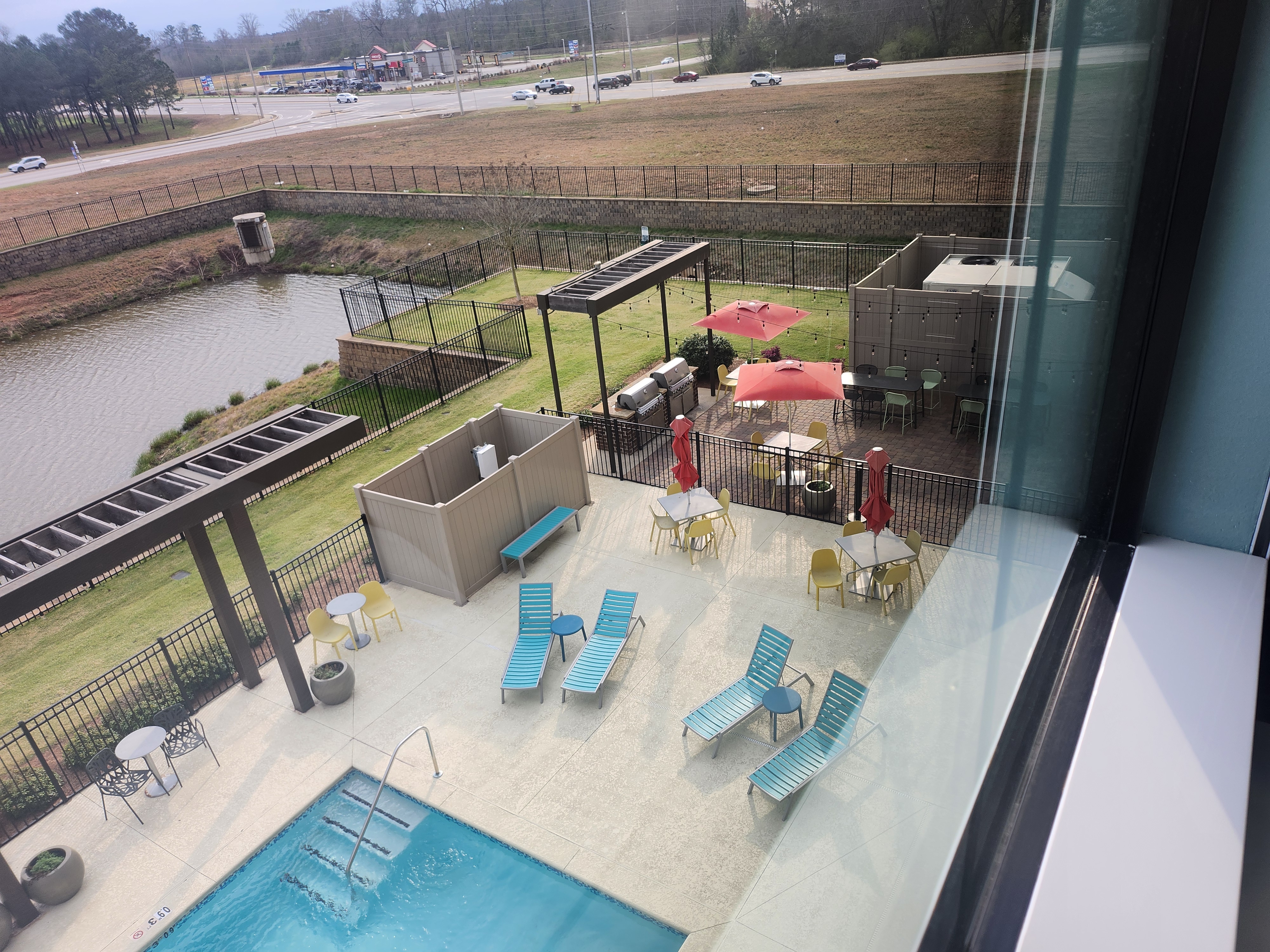 방에서 보이는 수영장! 그리고 그 옆에 고기를 구울 수 있는 곳 까지!