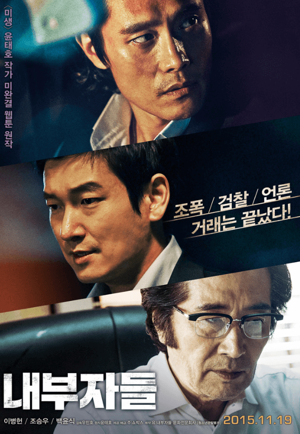 2015년 11월에 707만 명의 관객을 모은 영화다. 검사, 정치인, 대기업 그리고 깡패까지 모두 모여 서로의 돈을 위해 최선을 다한다. 안상구 역의 이병헌과 우장우 역의 조승우 그리고 이강희 역의 백윤식이라는 최고의 배우들로 흥미진진한 영화를 만든다. 결국 권선징악으로 끝났다. 하지만 그렇게 되기까지 정말 많은 힘든 일이 발생한다.