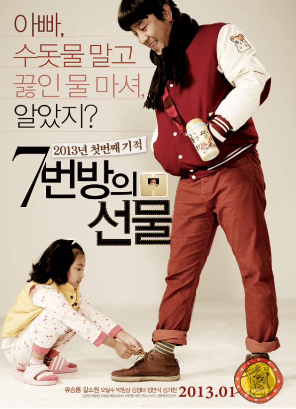 2013년 설날 대작으로 가족영화가 등장했다. 류승룡 배우의 7번 방의 선물이다. 누명을 쓰고 교도소에 들어간 6살 지능의 류승룡이 있다. 그에게는 이쁜 딸이 있다. 딸 예승이를 보고 싶어 하는 류승룡을 위해 교도소로 딸을 몰래 데리고 오는 작전을 세운다. 결국 딸은 교도소에 들어와서 생활을 하게 된다. 백만 불짜리 미소를 보기를 바란다.