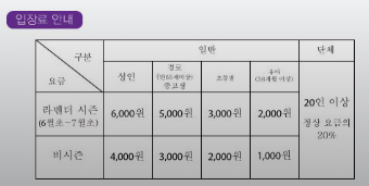 주평일에는 2~5회차만 운영하니 참고하시기 바랍니다.